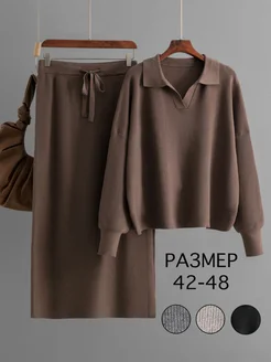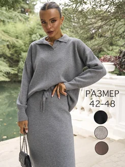Костюм вязаный с юбкой теплый осенний трикотажный