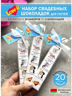 Подарочный набор маленьких шоколадок на свадьбу (20шт)