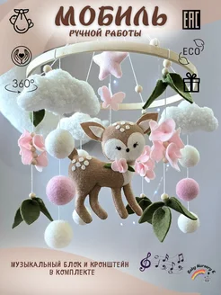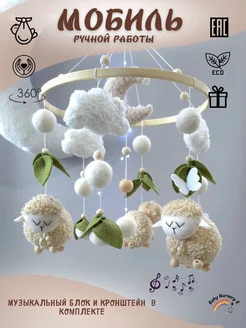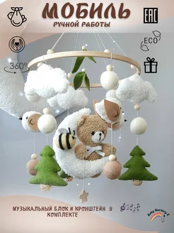 Мобиль из фетра музыкальный в кроватку для новорожденных