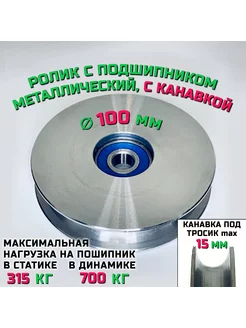 Ролик-шкив с подшипником 100х12 мм с канавкой 15 мм