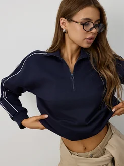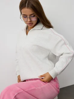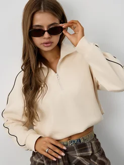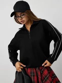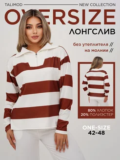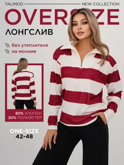 Лонгслив оверсайз тельняшка на молнии в рубчик