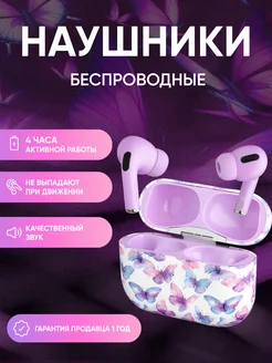 Наушники беспроводные с микрофоном Bluetooth черные, бабочки