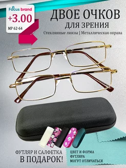 Очки для зрения +3.00 корригирующие стеклянные линзы