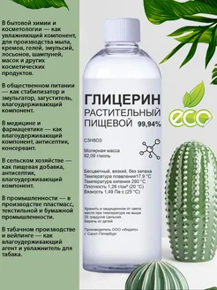 Глицерин пищевой растительный косметический 0,5л пищевой