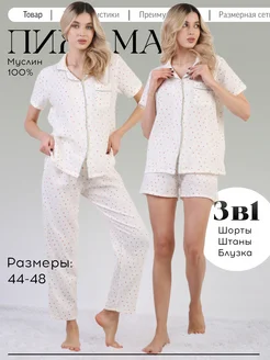 Пижама женская хлопок с шортами и штанами 3в1