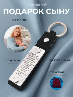 Брелок кожаный с гравировкой для сына от мамы и папы