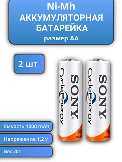 Батарейка аккумуляторная АА Ni-Mh пальчиковая 2шт