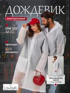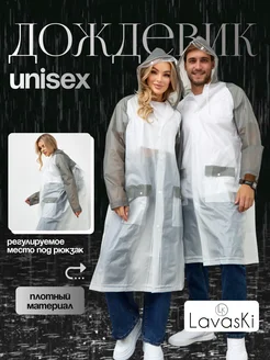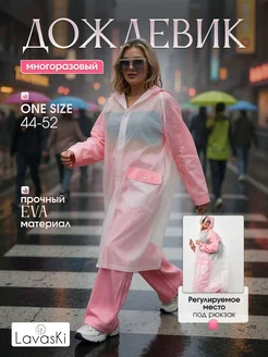 Непромокаемый длинный дождевик плащ с капюшоном и карманом