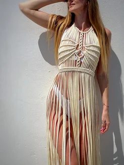 Туника пляжная осенняя летняяженская вязаная макраме платье