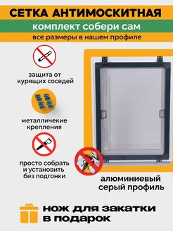 Москитная сетка серая на окно 150*90 от комаров