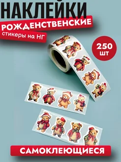 новогодние наклейки на подарки и упаковку в рулоне
