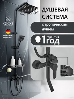 Душевая система с тропическим душем и смесителем черная