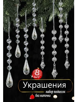 Елочные игрушки бриллиант, лед, капелька 8шт