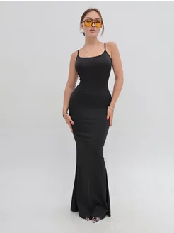 Платье приталенное черное без рукавов