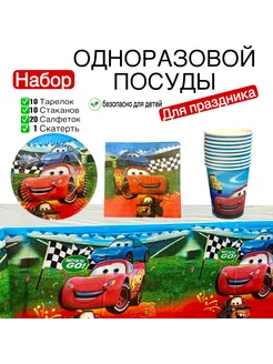 одноразовая пoсуда для праздника Тачки маквин