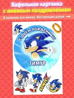 Вафельная картинка на торт мальчику имя Тимур соник икс