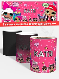 Кружка хамелеон для чая девочке детская имя Катя кукла lol