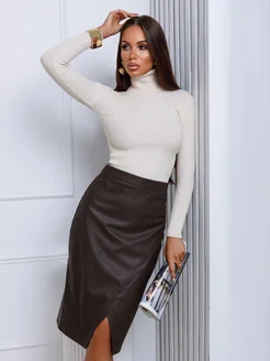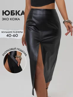 Юбка из экокожи миди офисная с разрезом