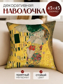 Наволочка декоративная двухсторонняя 45х45, Климт Поцелуй