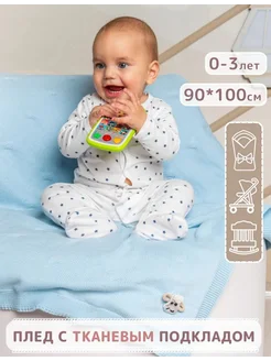 Плед для новорожденных мальчиков вязаный теплый на выписку
