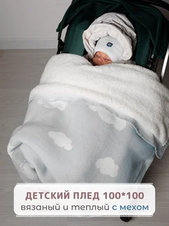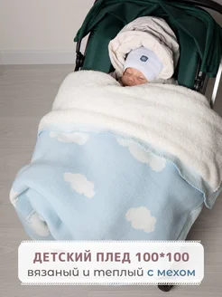 Теплый детский плед для новорожденных вязаный выписка зима