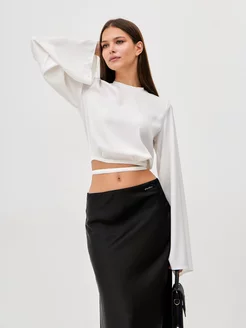 Нарядная шелковая блузка с рукавами клеш
