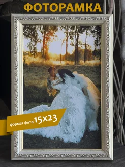 Фоторамка со стеклом 15х23 см, белая с серебром