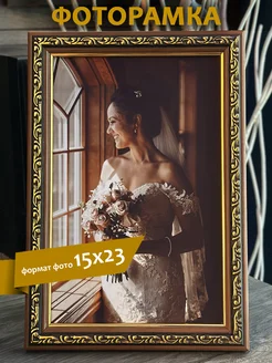 Фоторамка со стеклом 15х23 см, коричневая с золотом