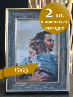 Фоторамка со стеклом 15х23 см, синяя с патиной