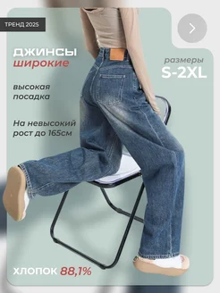 Джинсы широкие прямые высокая посадка узкая талия 150-165