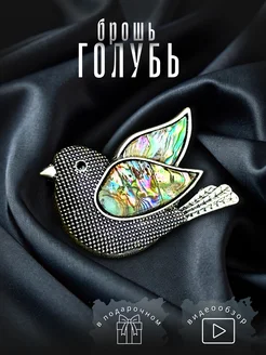 брошь голубь с перломутровыми крыльями,винтажная стиль