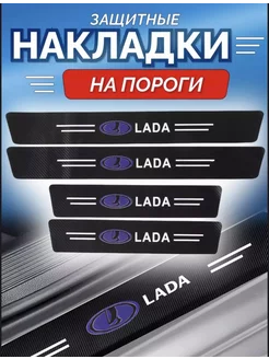 Карбоновые защитные накладки на пороги авто Lada