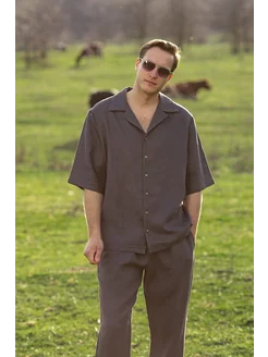 Рубашка летняя льняная с длинным рукавом