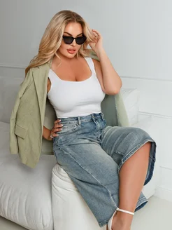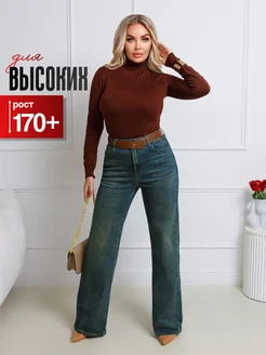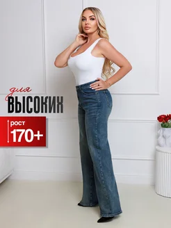 Джинсы трубы широкие с высокой посадкой больших размеров