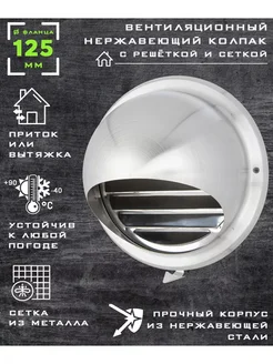 Вентиляционный колпак с сеткой и фланцем 125 мм