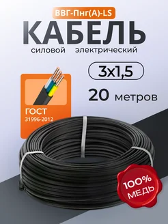 Кабель электрический 3х1,5 ГОСТ ВВГ-Пнг(A)-LS 20 метров