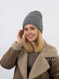 Шапка мериносовая с вывязанной макушкой. Цвет льна