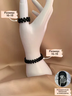 Браслет из черных бусин, размер 15-19