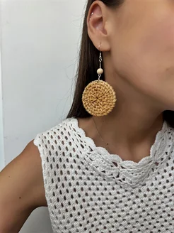Деревянные серьги из ротанга