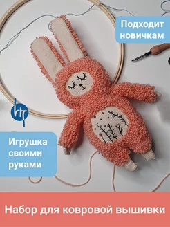Набор для вышивания в ковровой технике, игрушка Заяц розовый