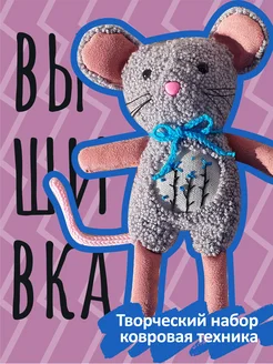 Набор для вышивания в ковровой технике, игрушка Мышь серая 1