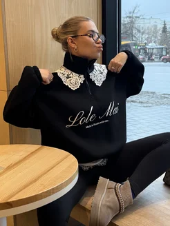 Свитшот на молнии с начесом оверсайз полузамок теплый