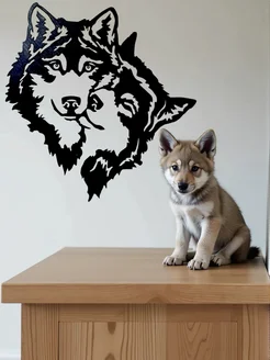 Панно на стену деревянное "Волки" 50 х 50 см (черный)