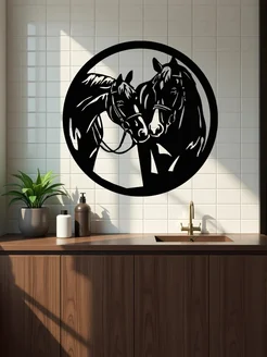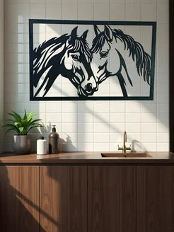Панно на стену деревянное "Лошади" 50 х 32 см черный