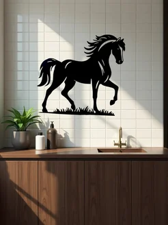 Панно на стену деревянное "Лошадь 15" 50 х 50 см цвет черный