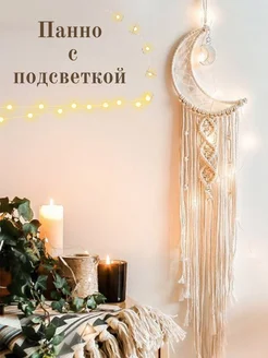 Панно макраме Луна, Ловец снов с гирляндой бохо