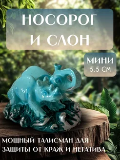 Носорог и слон синие статуэтка мини феншуй
