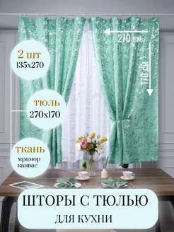 Комплект шторы с тюлью для кухни короткие