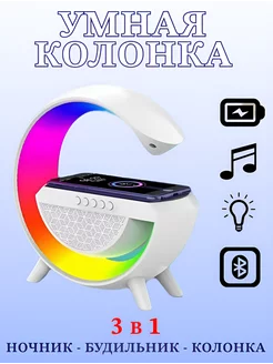 Колонка ночник с беспроводной зарядкой и подсветкой