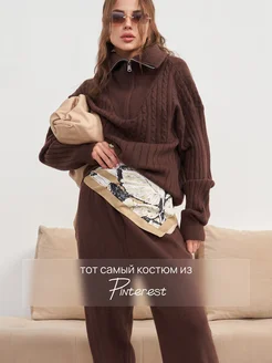 Костюм вязаный трикотажный с брюками оверсайз теплый